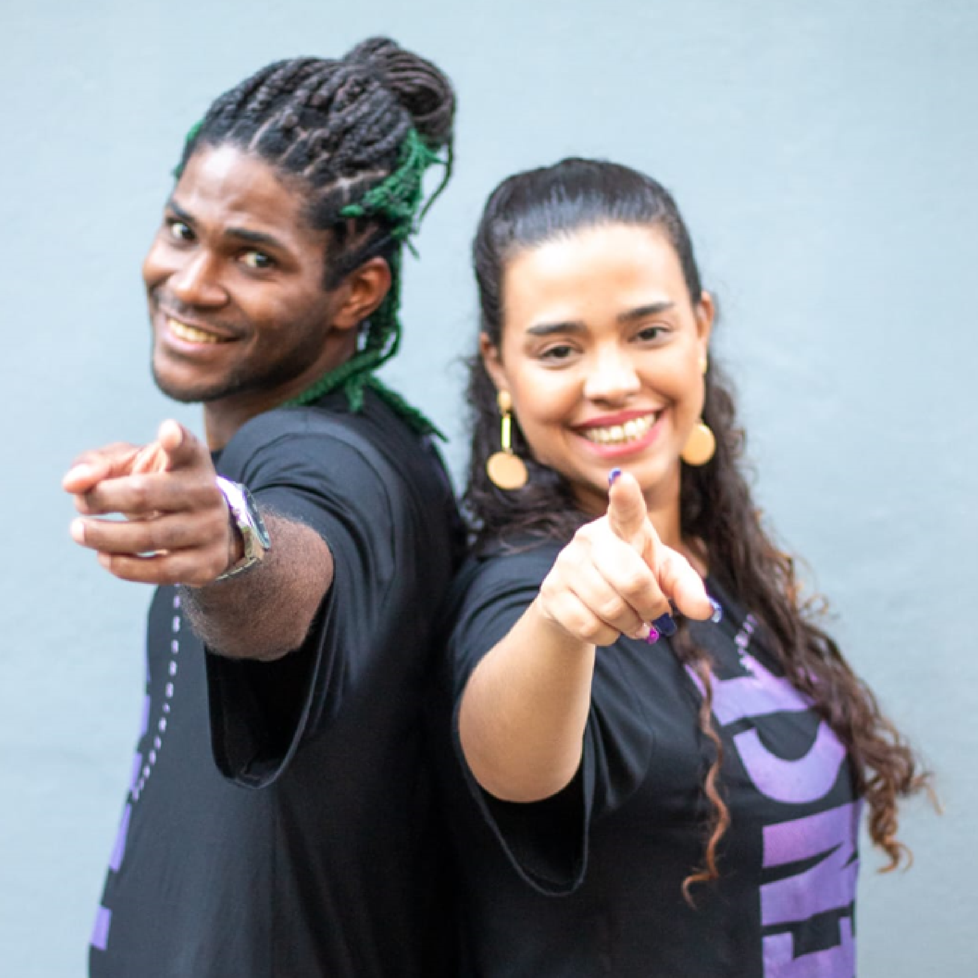 Kadu e Vivi, são especialistas em Samba de Gafieira. Parceiros de dança, desde 2002, o processo de formação da dupla é atravessada por técnicas diversas como balé clássico, dança contemporânea, jazz, acrobacia de solo e capoeira - além das danças de salão. Há também estreita proximidade com o método do coreógrafo da Cia Aérea de Dança, João Carlos Ramos, de quem foram alunos.